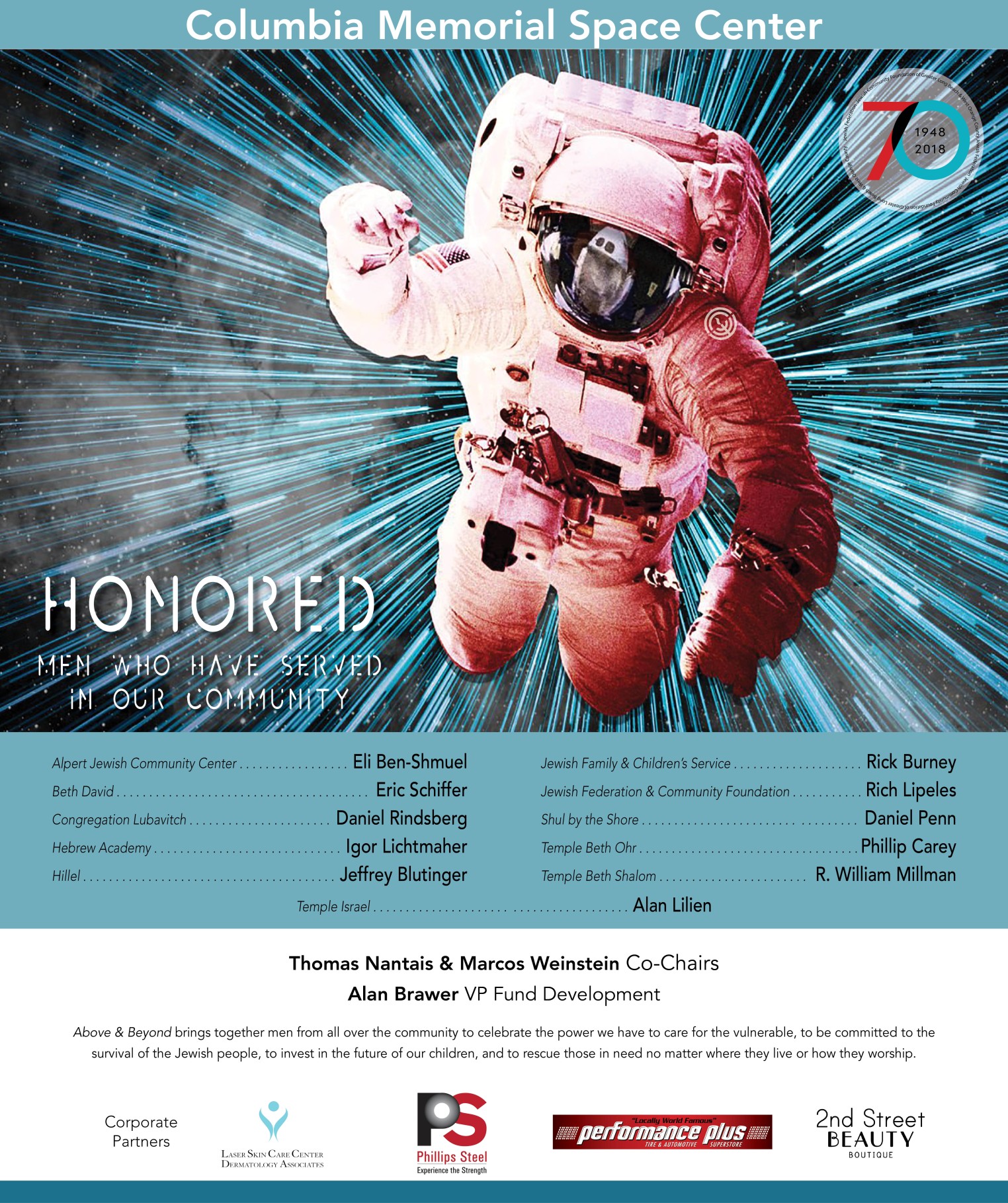 We celebrated our 6th Annual Jewish Federation's Men's Philanthropy Annual Community Campaign Fund event on Thursday, February 7th, 2019 at the Columbia Memorial Space Center in the City of Downey, CA.