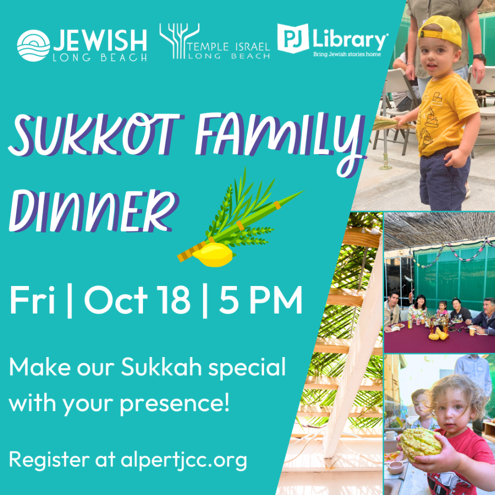 Celebrate Sukkot with a vegetarian kosher-style dinner in the Sukkah for the whole family! Enjoy pasta dinner, drinks, dessert, and a hands-on Sukkot experience! Plus, enjoy crafts and a Tot Shabbat featuring Cantor Cooper before dinner.