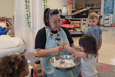 In honor of Rosh Hashanah, our apple cinnamon bread experience was filled with joyful discovery! 🍎 The children mixed, poured, and created with wonder, strengthening their fine-motor skills, practicing early math, and building a love for learning. This sweet celebration connected our 2-year-olds to tradition while filling the classroom with warmth, curiosity, and community.