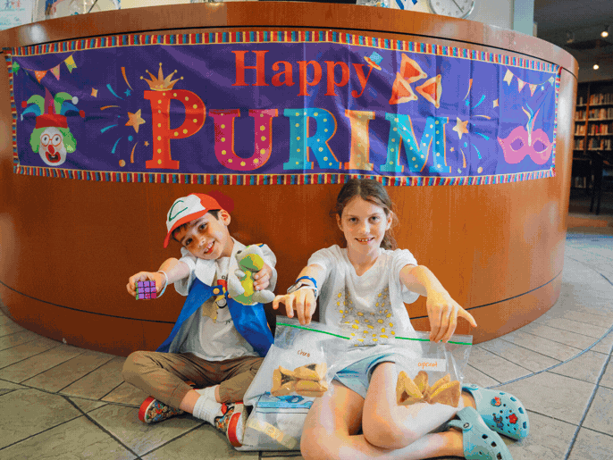 Purim commemorates Queen Esther’s bravery and how she and her uncle Mordechai saved the Jews of Persia from an evil plot by Haman (boo!), the Prime Minister. The holiday is celebrated with costumes, festive celebrations, sharing food with friends, giving to those in need, and enjoying hamantaschen while retelling the Purim story.